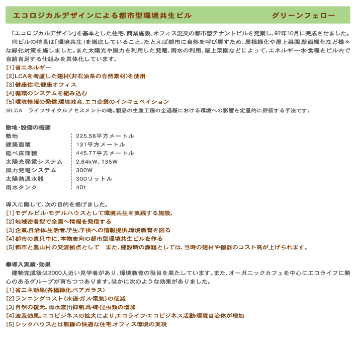 | グリーンフェロー概要詳細 ※エコスポット愛知より抜粋 |